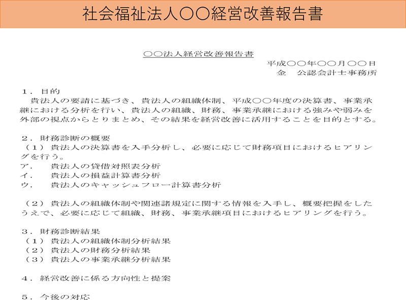 • 社会福祉法人の会計監査受入体制整備や経営改善の手続きを効率的に進めることができる。